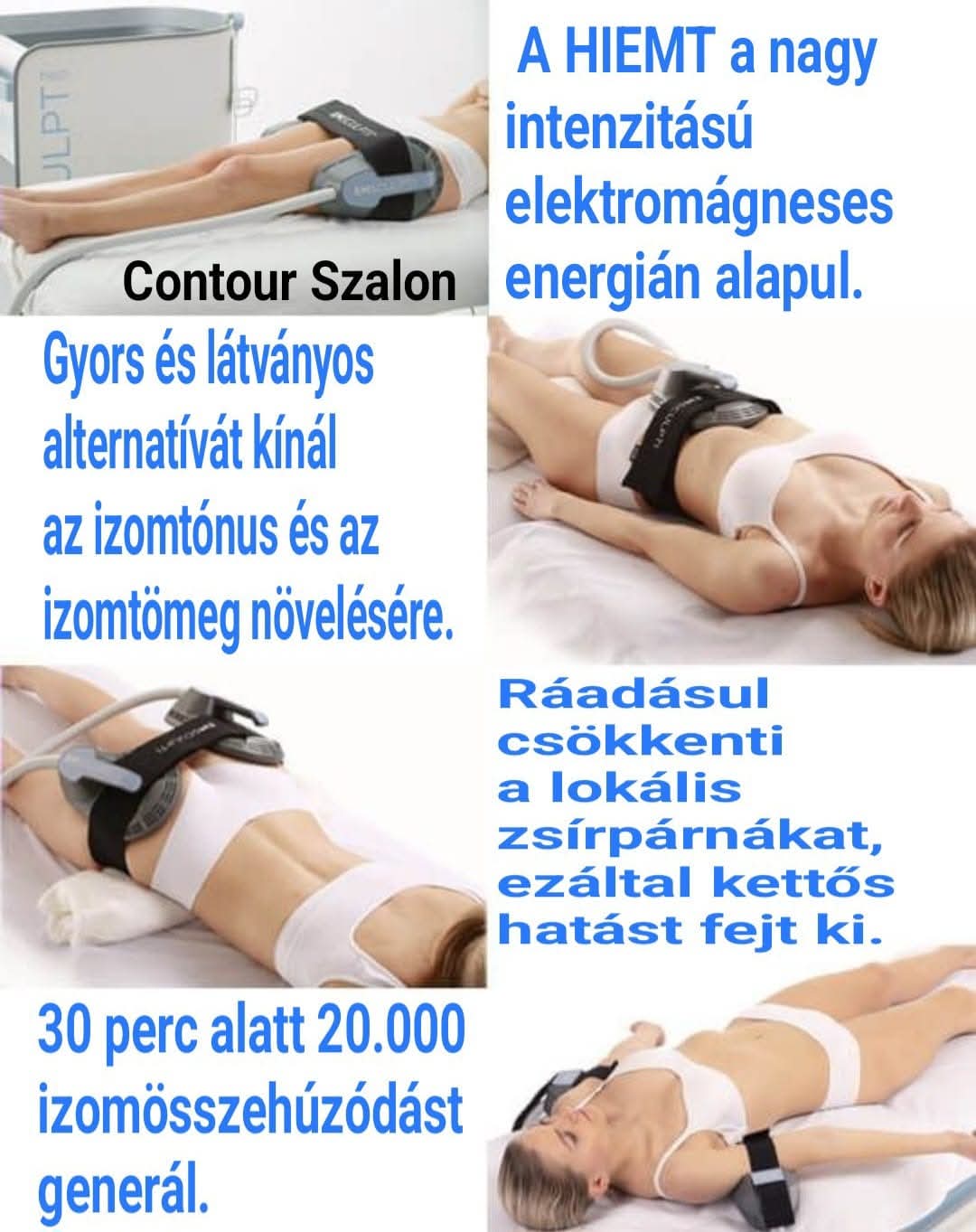 Ha nincs időd órákat tölteni az edzőteremben, válaszd az edzés innovációját, a Hiemt elektromágneses kezelést! A Hiemt 30 perc alatt 20.000 izomösszehúzódást generál, amely normál edzéssel kivitelezhetetlen.